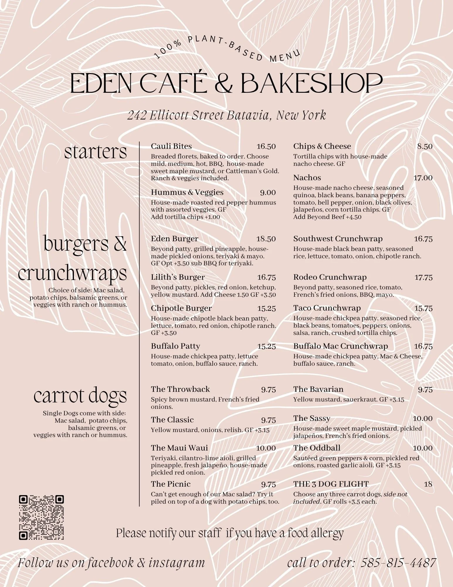 Seasonal greens, breaded & baked cauli bites, buffalo sauce, celery, tomato, onion, carrots, Ranch.